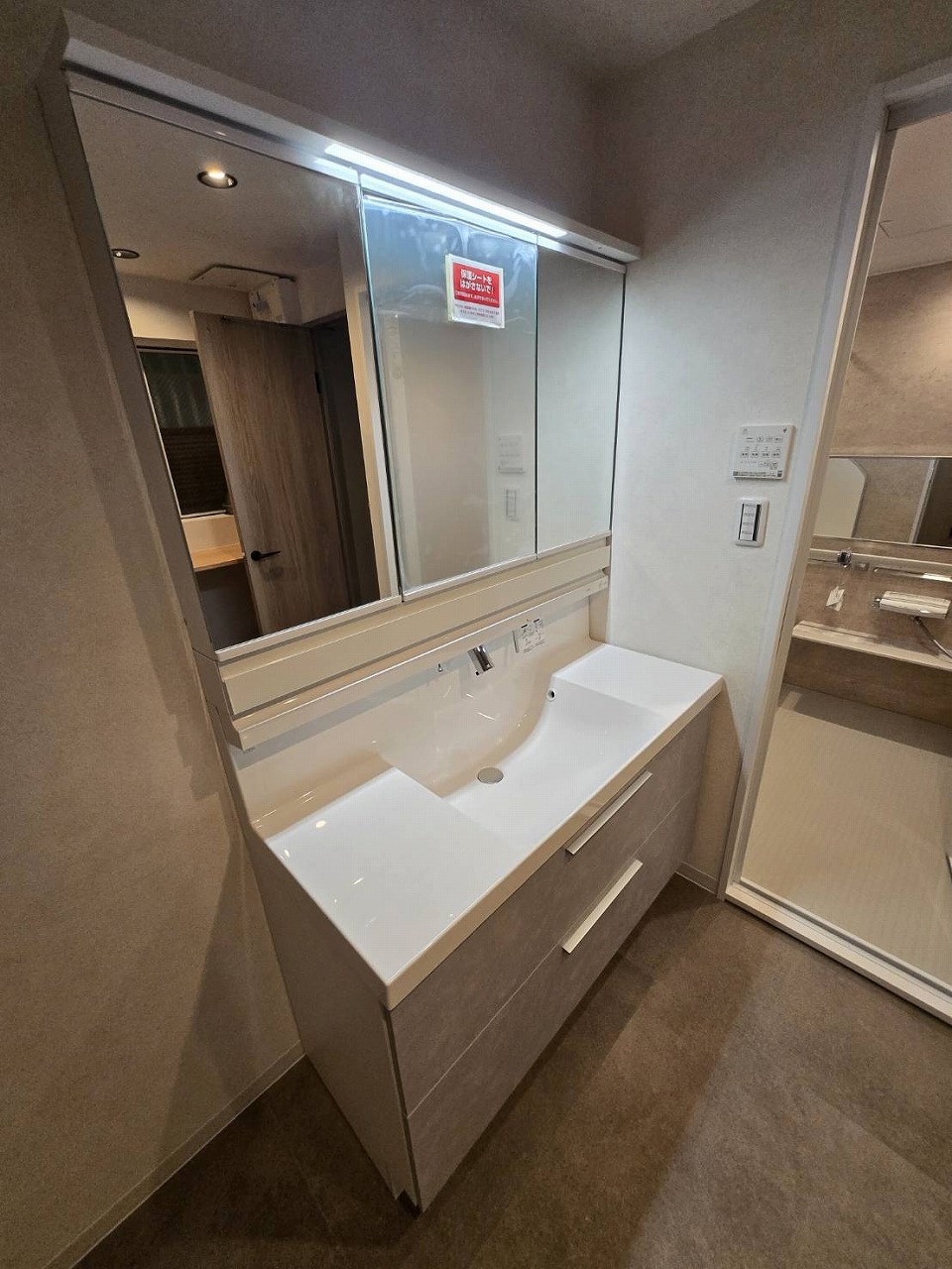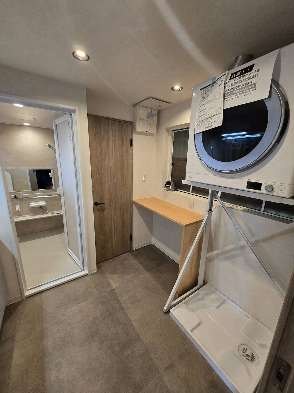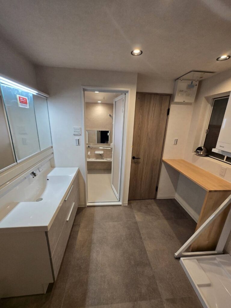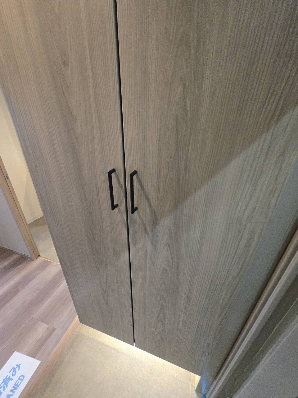 マンションではなかなか備え付けれない幹太くんを設置し横にフリースペースを作り完璧な動線に仕上がりました。